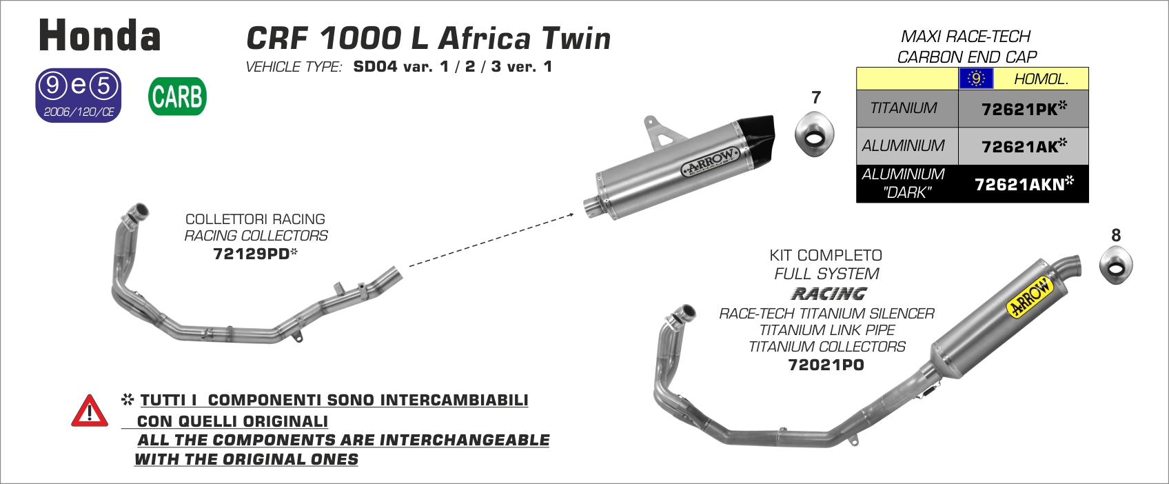 72129PD - Manifold Exhaust Arrow Racing SS Honda CRF 1000 L Africa Twin