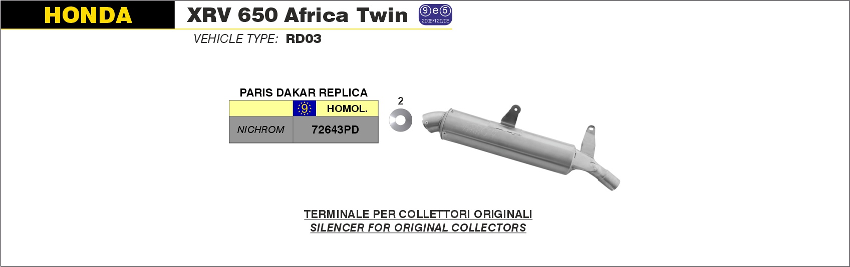 72643PD - Exhaust Muffler Arrow Paris-Dakar SS Honda XRV 650 Africa Twin (88-89)
