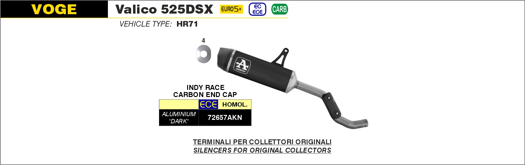 Exhaust Muffler Arrow Indy Race EVO Dark Aluminium Carbon End Cap Voge Valico 525DSX (23- )