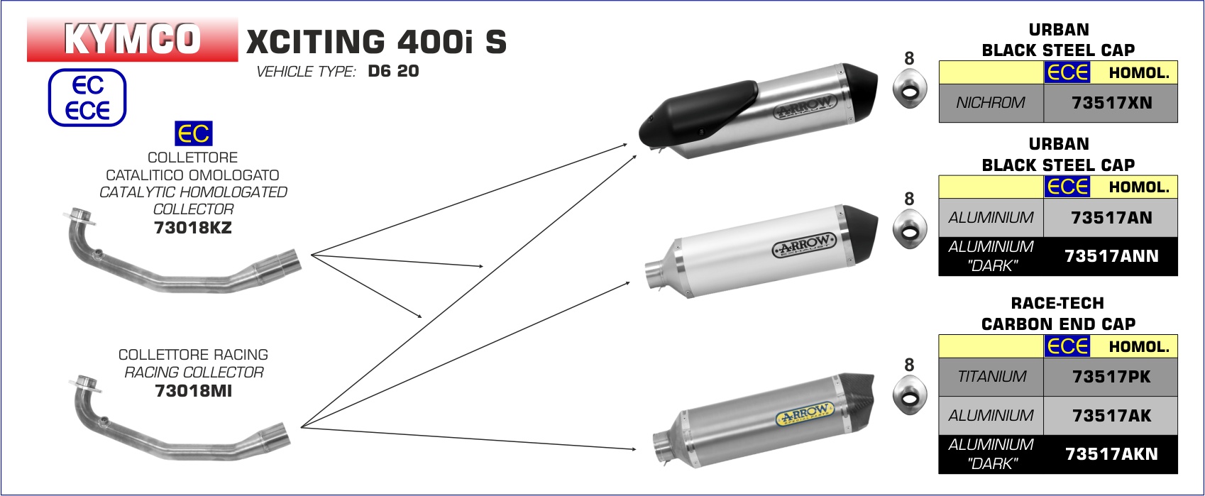 Exhaust Muffler Arrow Urban Aluminum Dark Stainless Steel End Cap Kymco XCITING 400i S (19-20)