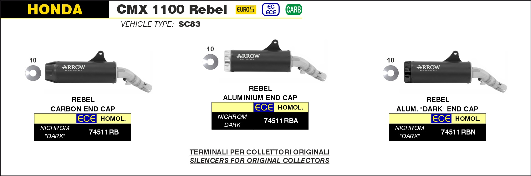 74511RB - Exhaust Muffler Arrow Rebel Nichrom Dark Honda CMX 1100 Rebel (21-22)Special Price €441.16 Regular Price €538.00 -18% -