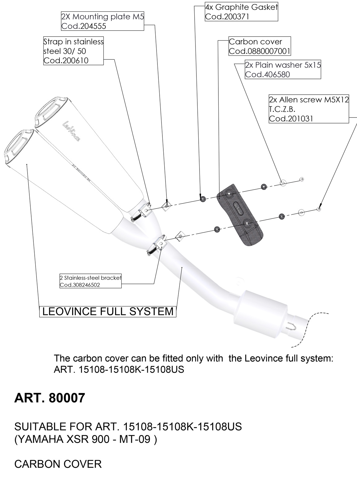 80007 - Carter Heat Shield Exhaust LeoVince YAMAHA MT-09/FZ-09/XSR 900 (13-20)