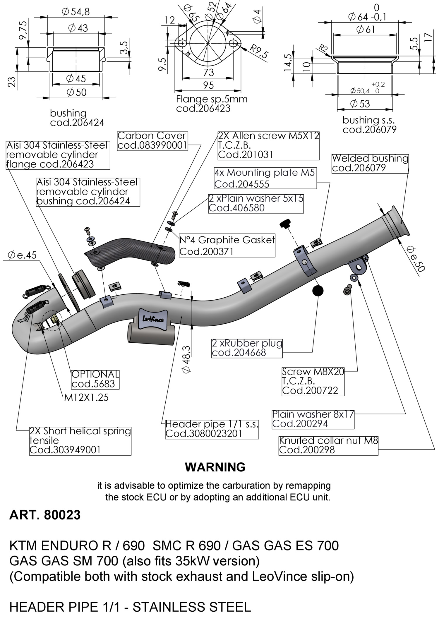 Exhaust manifold LeoVince Racing GAS GAS ES 700 (22-23) | GAS GAS SM 700 (22-23) | KTM 690 SMC R (19-23) | KTM 690 ENDURO R (19-23)