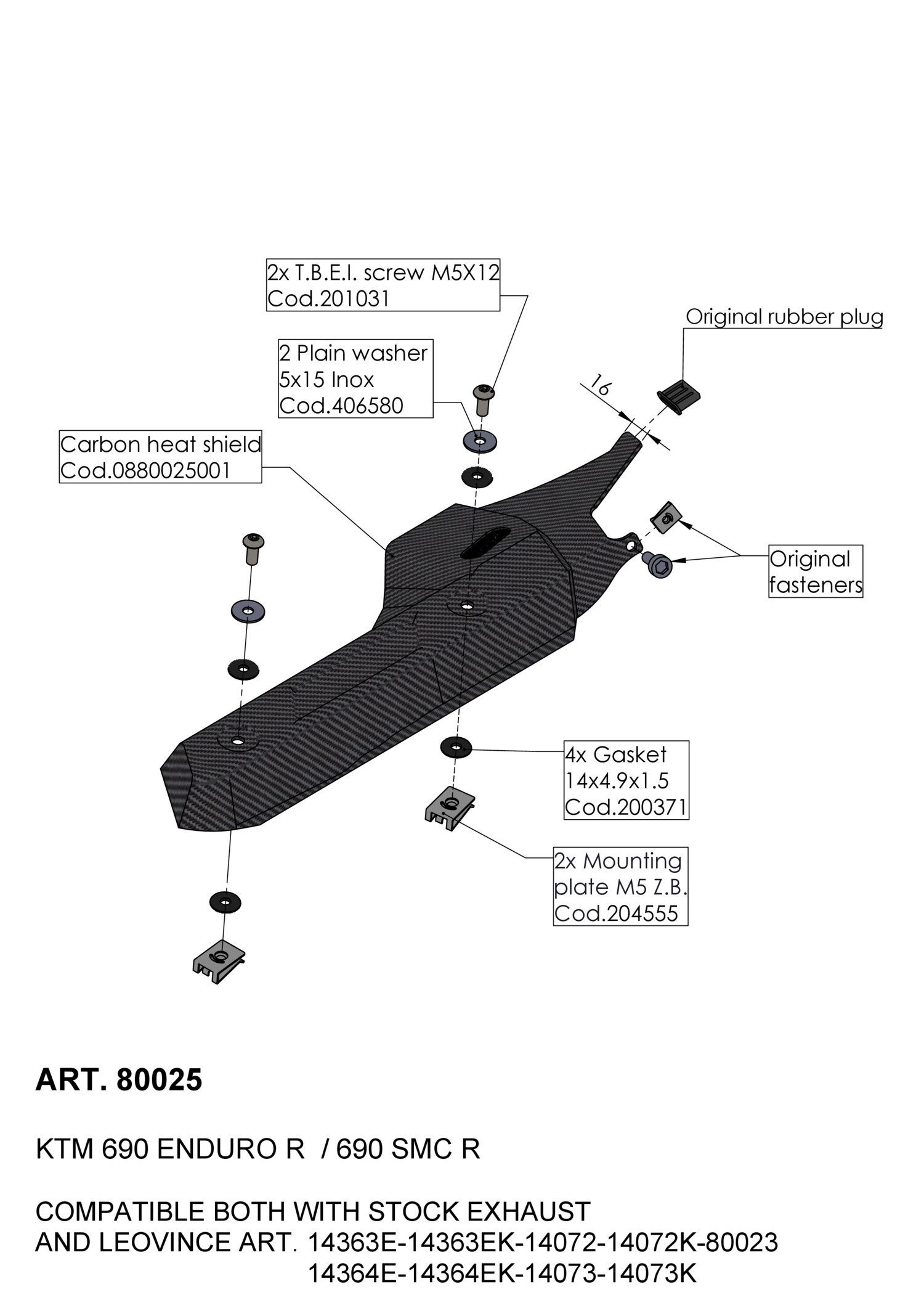 80025 - Exhaust heat shield LeoVince KTM 690 SMC / ENDURO R (19-23)
