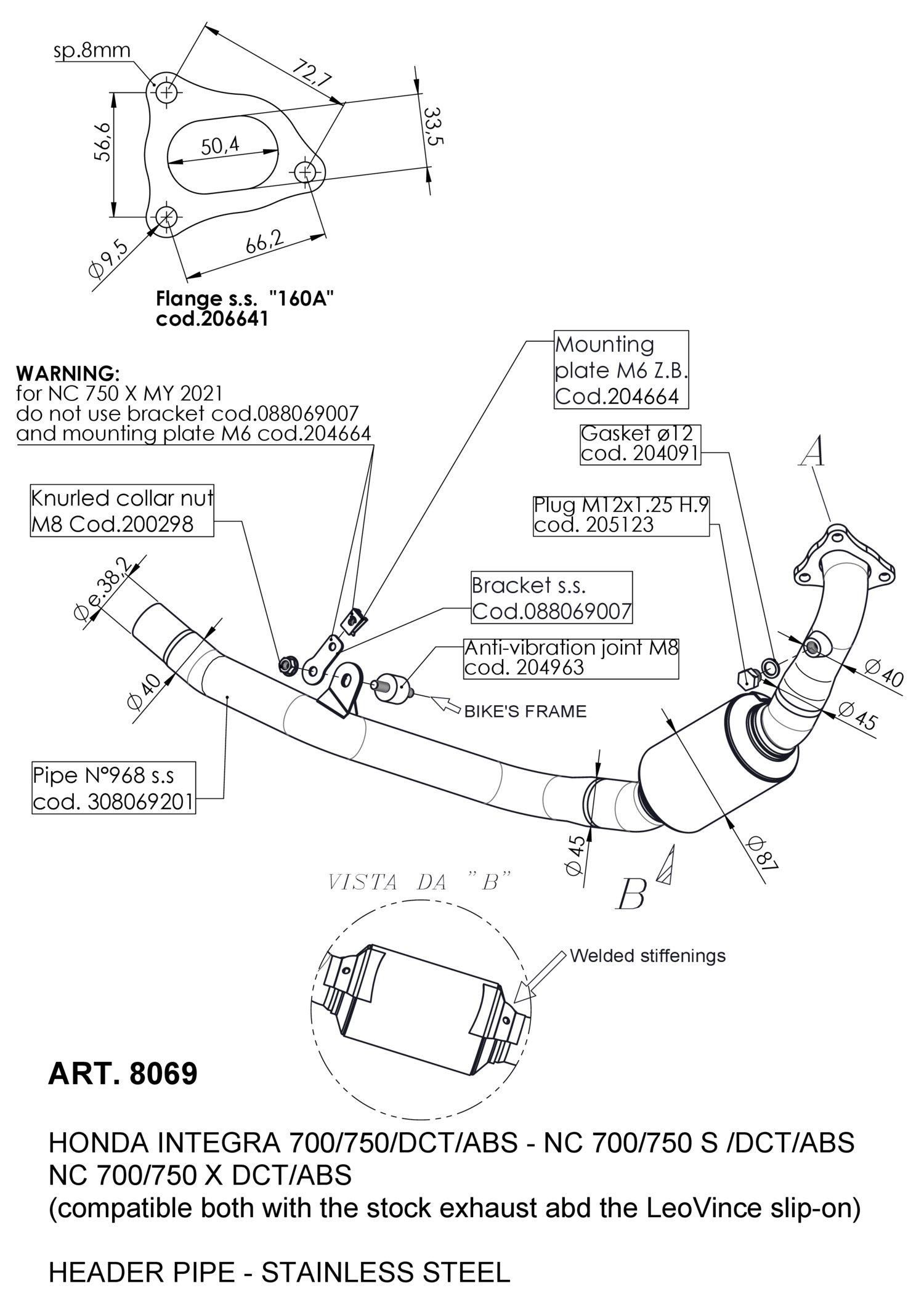 8069 - Exhaust manifold LeoVince Racing HONDA INTEGRA 700/DCT/ABS (12-13)