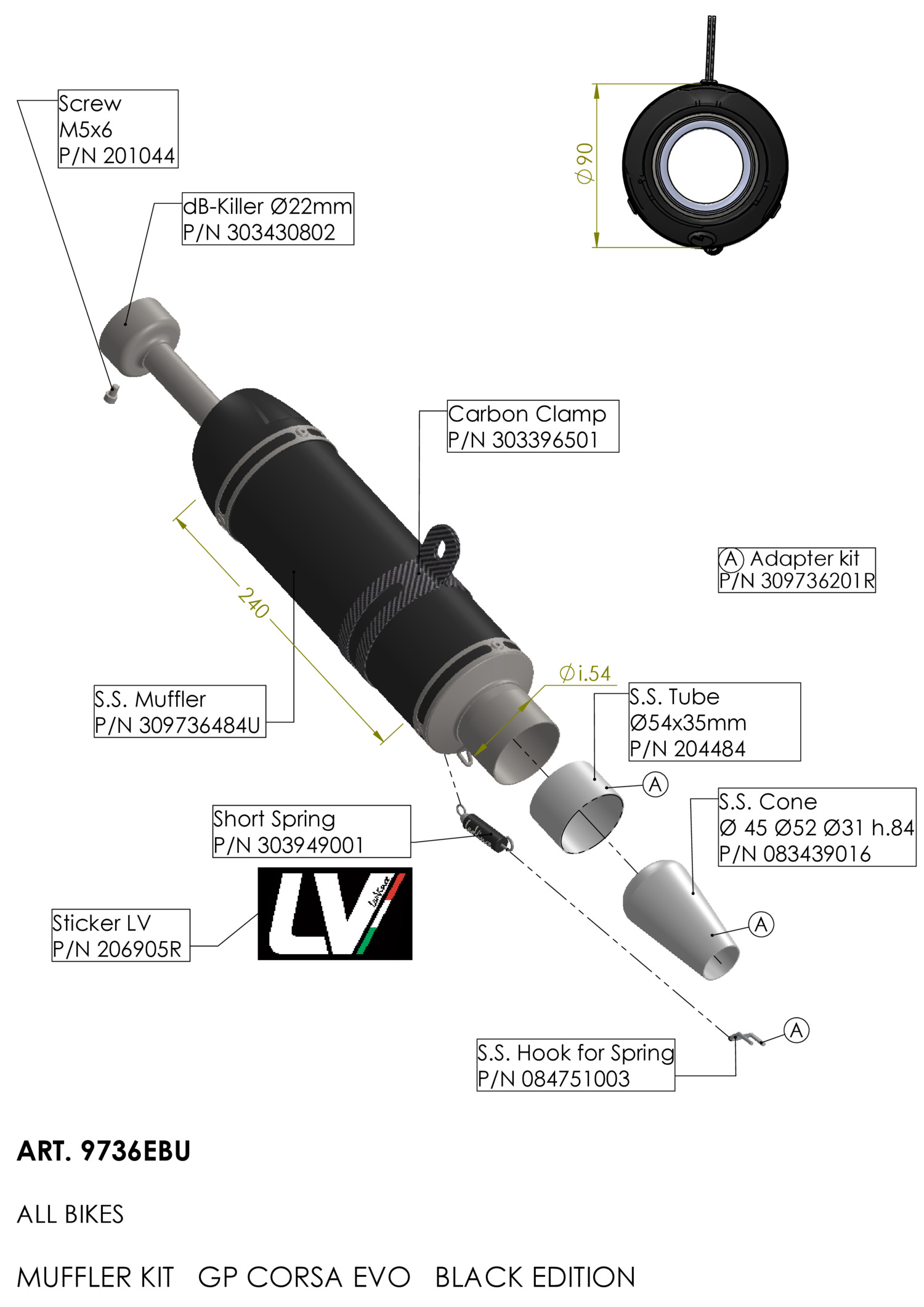 9736EBU - Exhaust muffler LeoVince GP CORSA EVO BLACK Ø 54