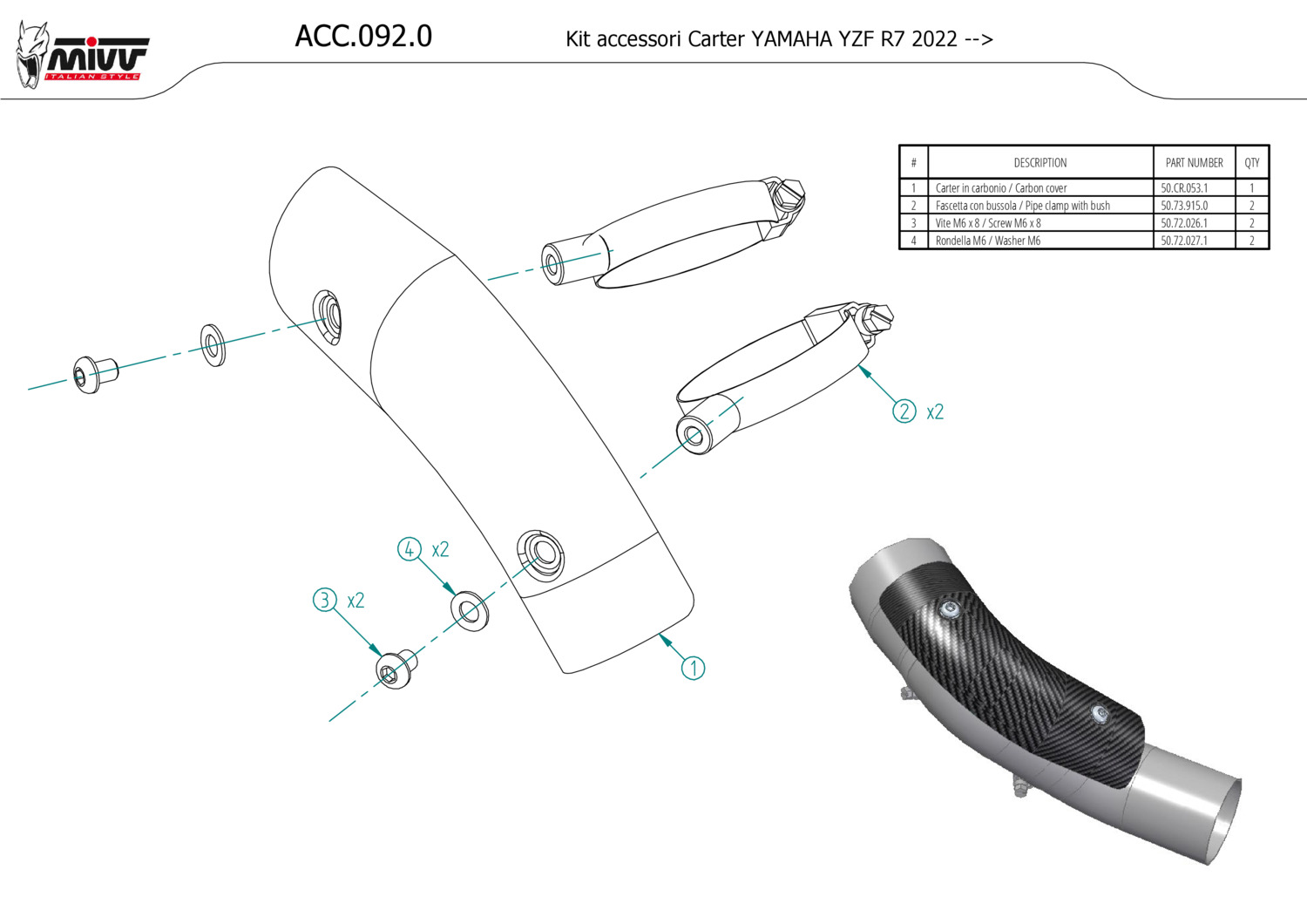 ACC.092.0 - Exhaust heat shield Mivv Carbon YAMAHA YZF R7 (22-24)