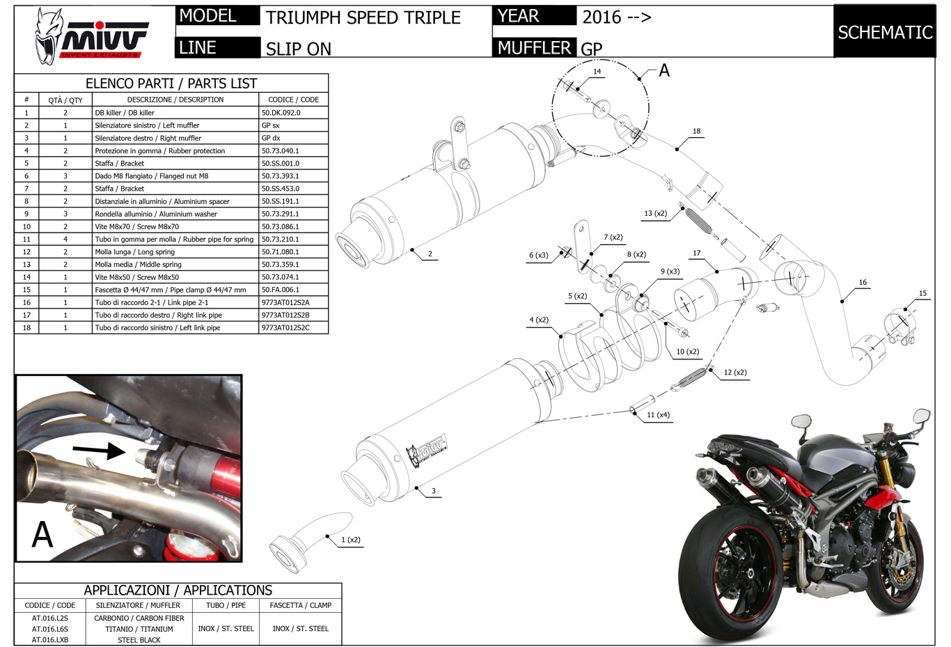AT.016.LXB - Exhaust Mufflers Mivv GP Steel Black TRIUMPH SPEED TRIPLE (16-)Special Price $603.90 Regular Price $784.28 -23% -