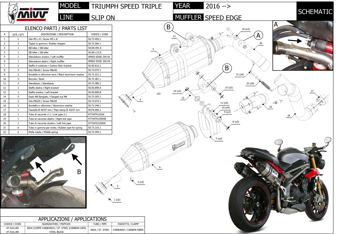 AT.016.LRB - Exhaust Mufflers Mivv SPEED EDGE Steel Black TRIUMPH SPEED TRIPLE