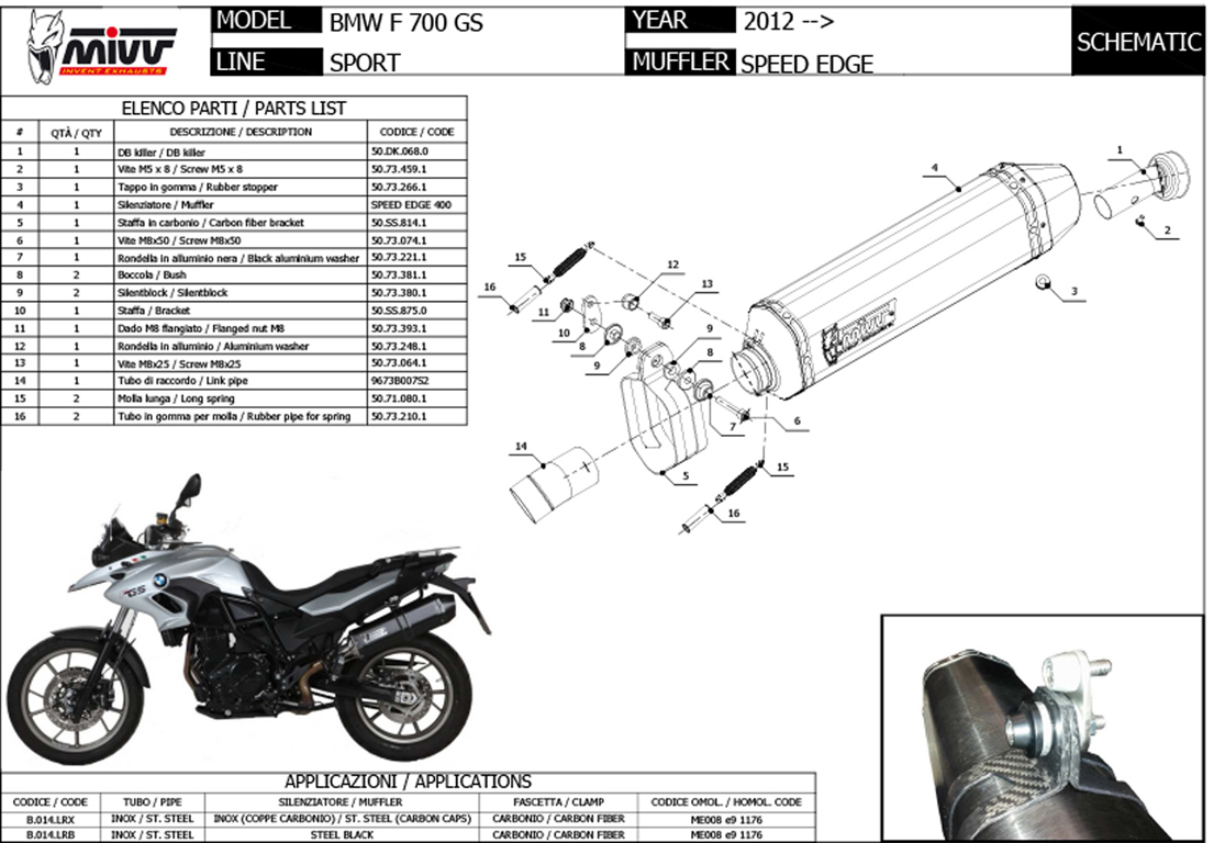 B.014.LEC - Silencer Exhaust Mivv SLIP-ON SPORT OVAL CARBON BMW F 700 GS 2012>Special Price $410.51 Regular Price $533.13 -23% -