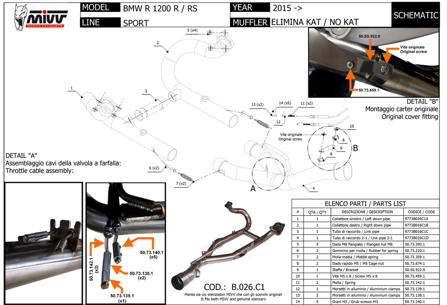 B.026.C1 - Raccordo no-kat Mivv SPORT BMW R 1200 R / RS (2015 >)