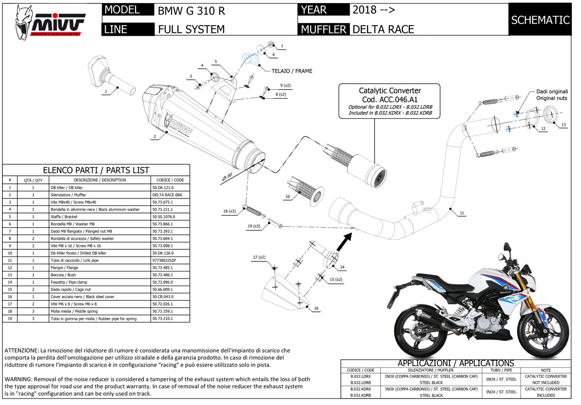 NOTICE: OMOLOGATO SOLO CON CATALIZZATORE INSTALLATO / TYPE APPROVED ONLY WHEN CATALYST IS INSTALLED
