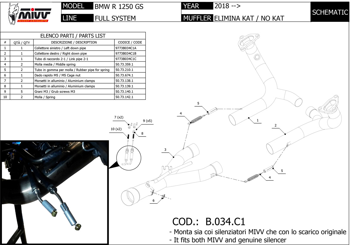 NOTICE: Tubo nokat (monta sia coi silenziatori MIVV che con gli originali) / No-kat pipe (compatible with both MIVV and original silencers)