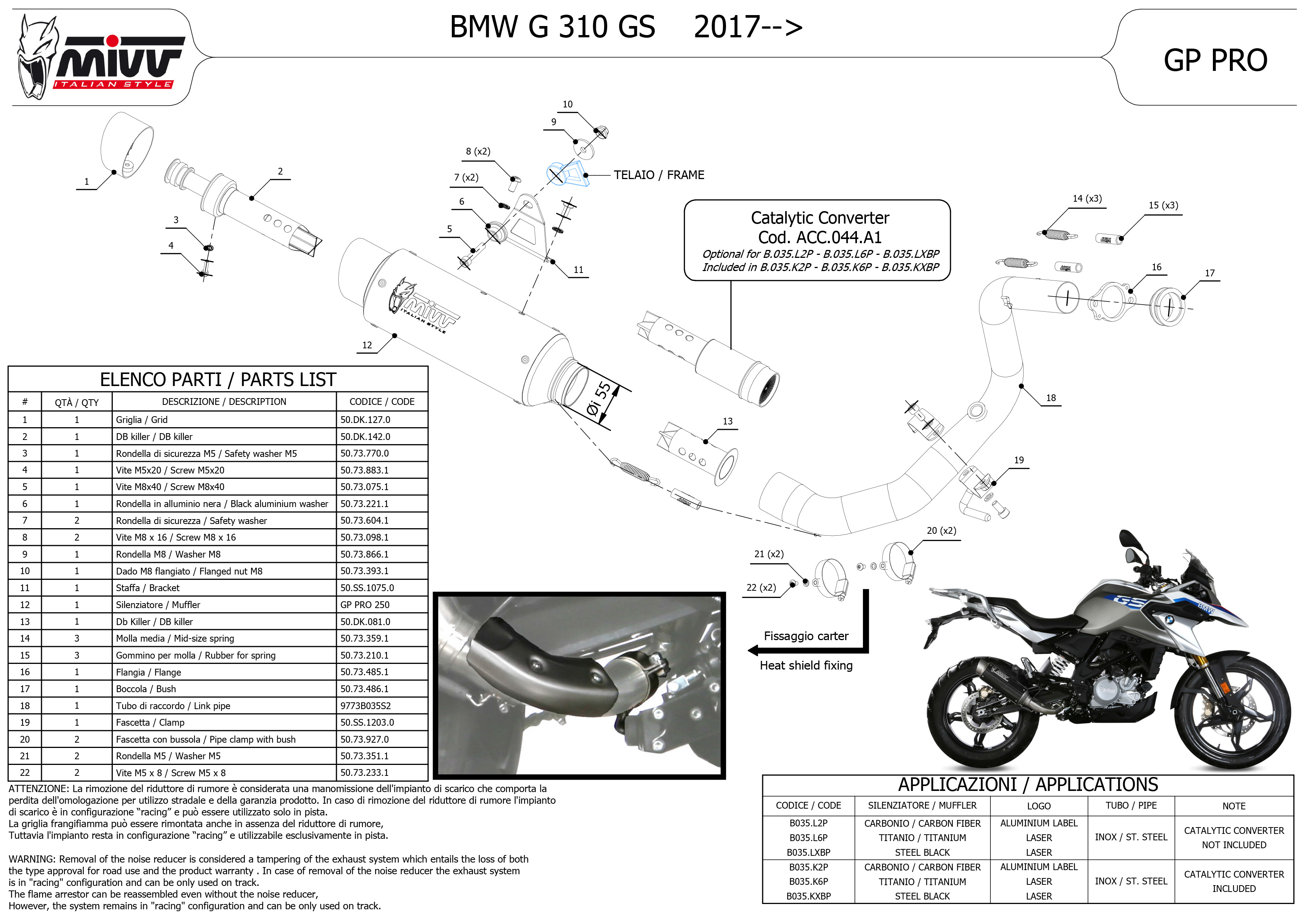 OMOLOGATO SOLO CON CATALIZZATORE ACC.044.A1 INSTALLATO / TYPE APPROVED ONLY WHEN ACC.044.A1 CATALYST IS INSTALLED