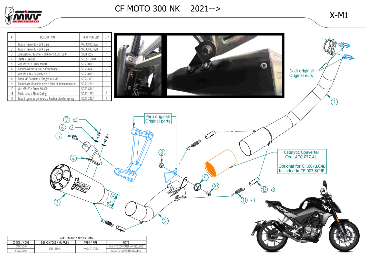 The Mivv X-M1 line, the result of the experience gained in the MotoGP and Moto2 World Championships, is the perfect synthesis between racing style and performance. With a design similar to the exhausts made for the World Championship, the X-M1 silencer has a conical shape and compact dimensions and is able to unleash the captivating MIVV sound.