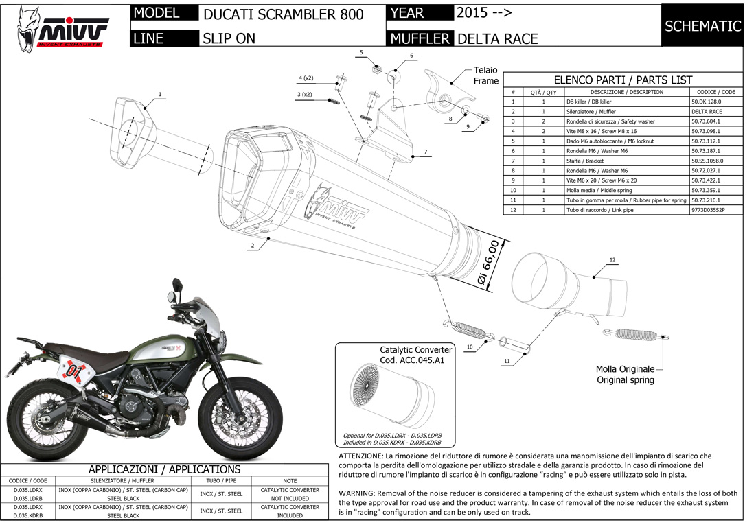 NOTICE: OMOLOGATO EURO4- EURO4 APPROVED / OMOLOGATO SOLO CON CATALIZZATORE INSTALLATO / TYPE APPROVED ONLY WHEN CATALYST IS INSTALLED