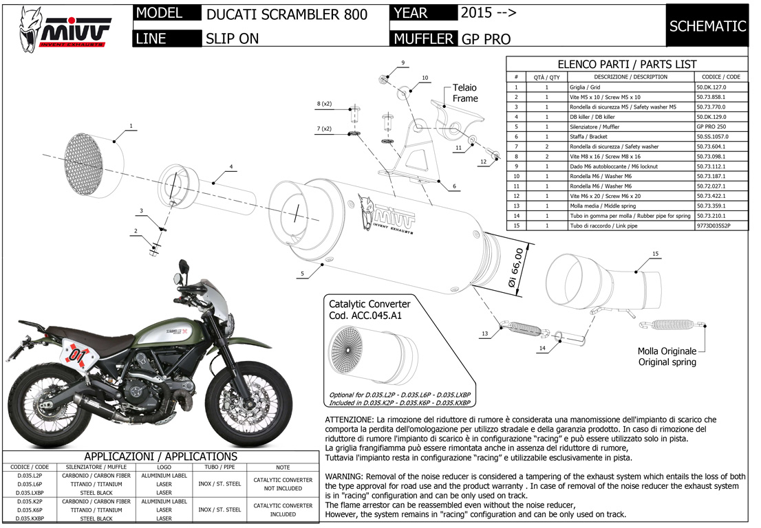 NOTICE: OMOLOGATO EURO4- EURO4 APPROVED / OMOLOGATO SOLO CON CATALIZZATORE INSTALLATO / TYPE APPROVED ONLY WHEN CATALYST IS INSTALLED