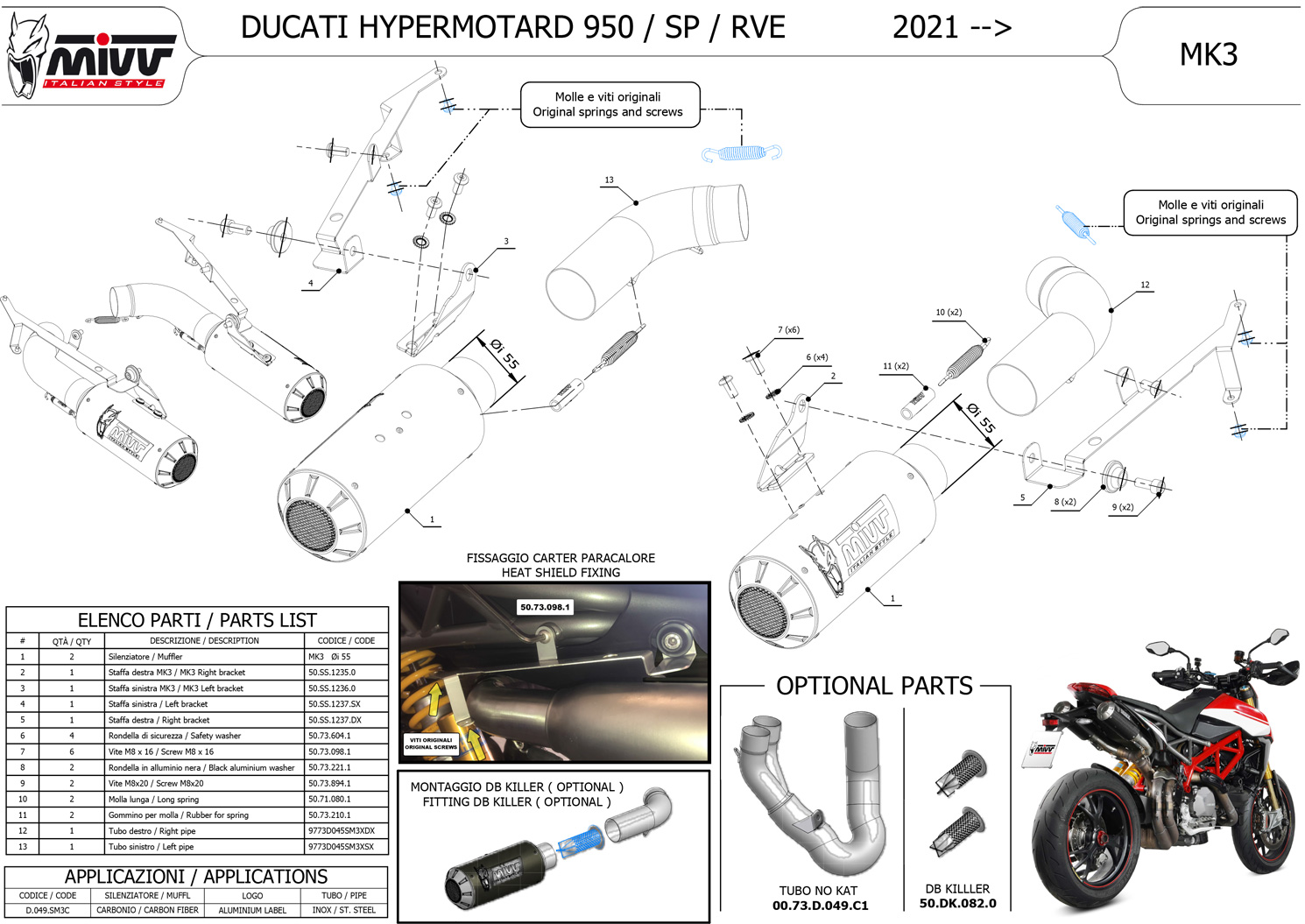 The MK3 line, resulting from the experience acquired in Moto3 and Moto2 world championships, is the perfect synthesis between performance and technology. With a design similar to the exhausts made for world championships Moto3 the MK3 is a compact product, capable of releasing the captivating mivv sound.