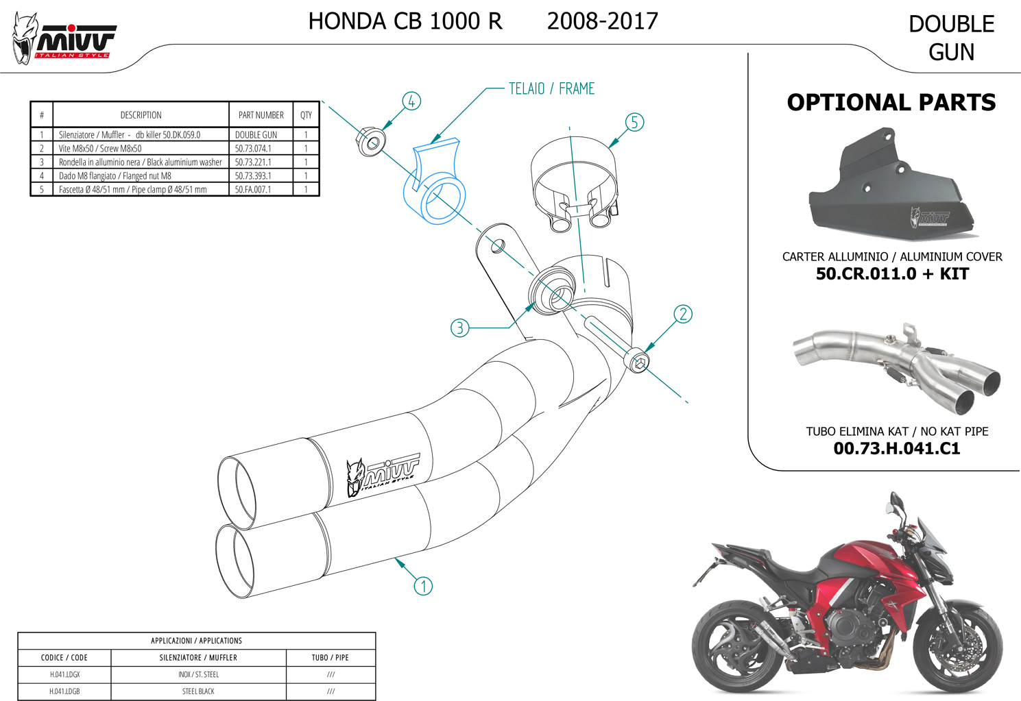 H.041.LDGB - Exhaust Muffler MIVV DOUBLE GUN Black HONDA CB 1000 R (08-17)