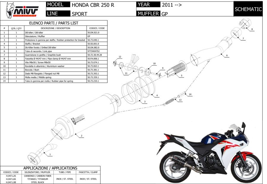 H.047.LXB - Exhaust Muffler Mivv SPORT GP STEEL BLACK HONDA CBR 250 R (2011 >)