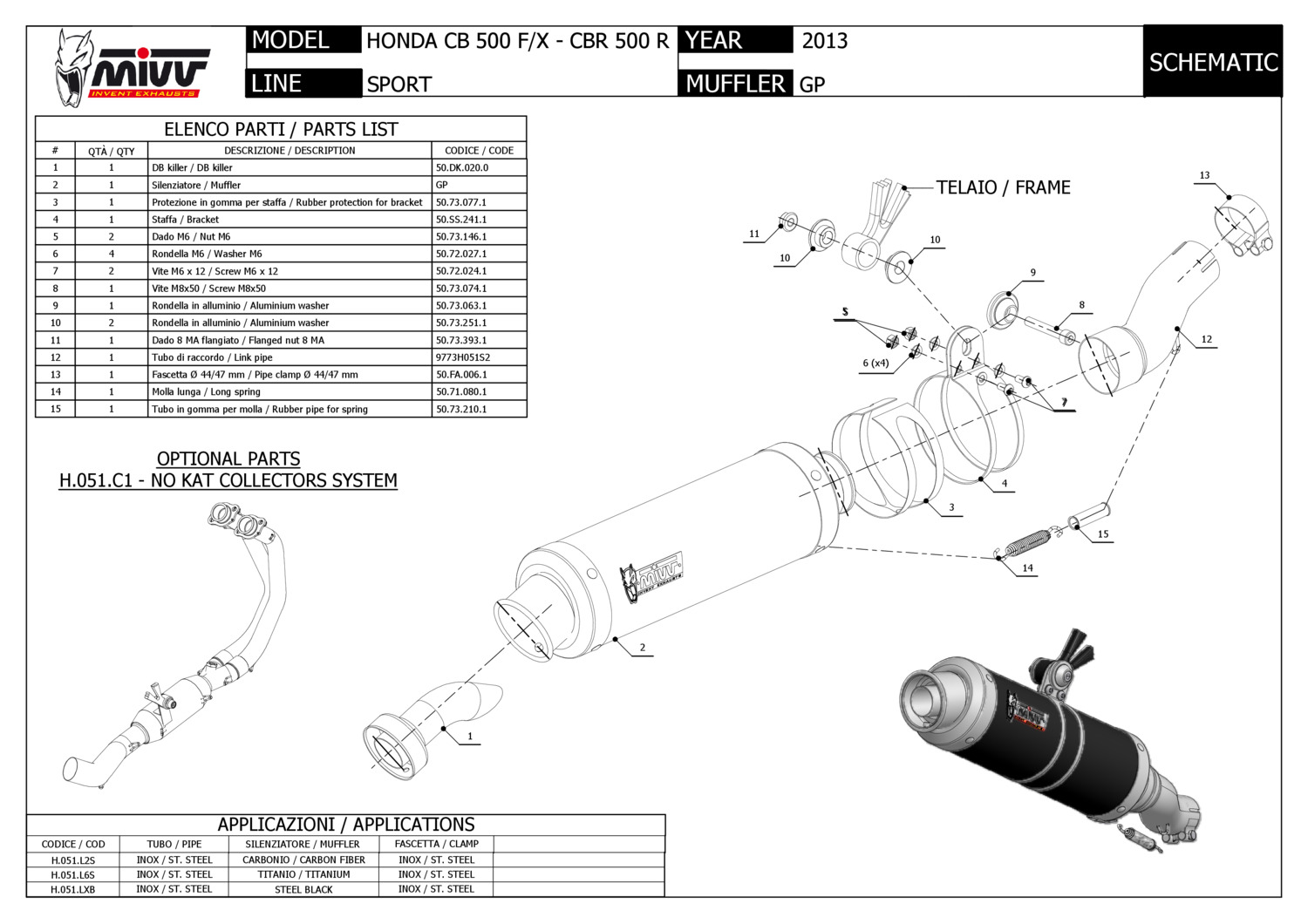 H.051.LXB - Muffler Exhaust Mivv GP BLACK HONDA CB 500 F / X - CBR 500 R 13-Special Price €259.49 Regular Price €337.00 -23% -