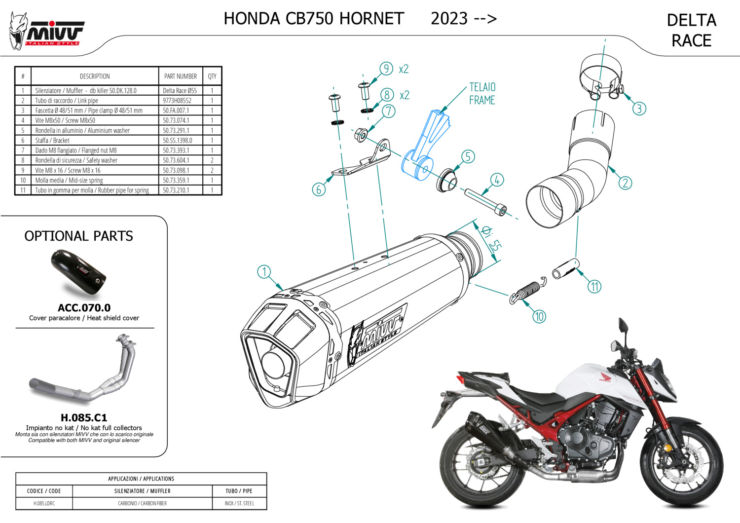 H.085.LDRC - Exhaust Muffler MIVV DELTA RACE Carbon HONDA CB750 HORNET (23-23)
