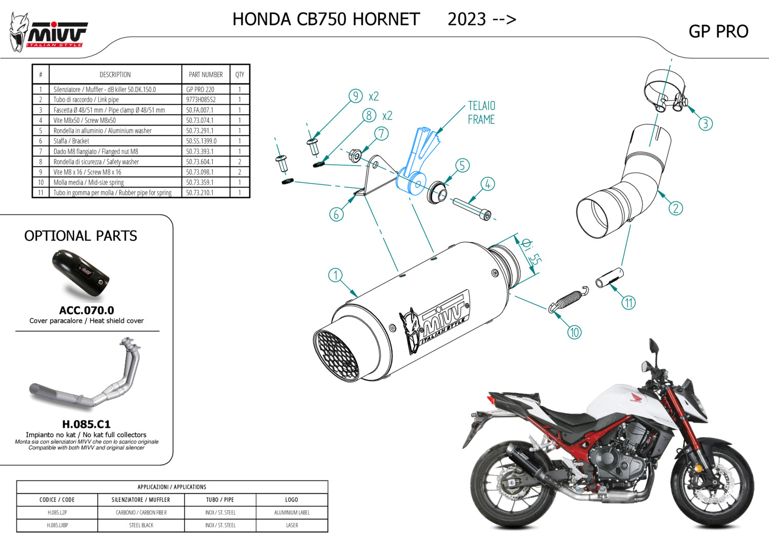 H.085.LXBP - Exhaust Muffler MIVV GPpro Black HONDA CB750 HORNET (23-23)