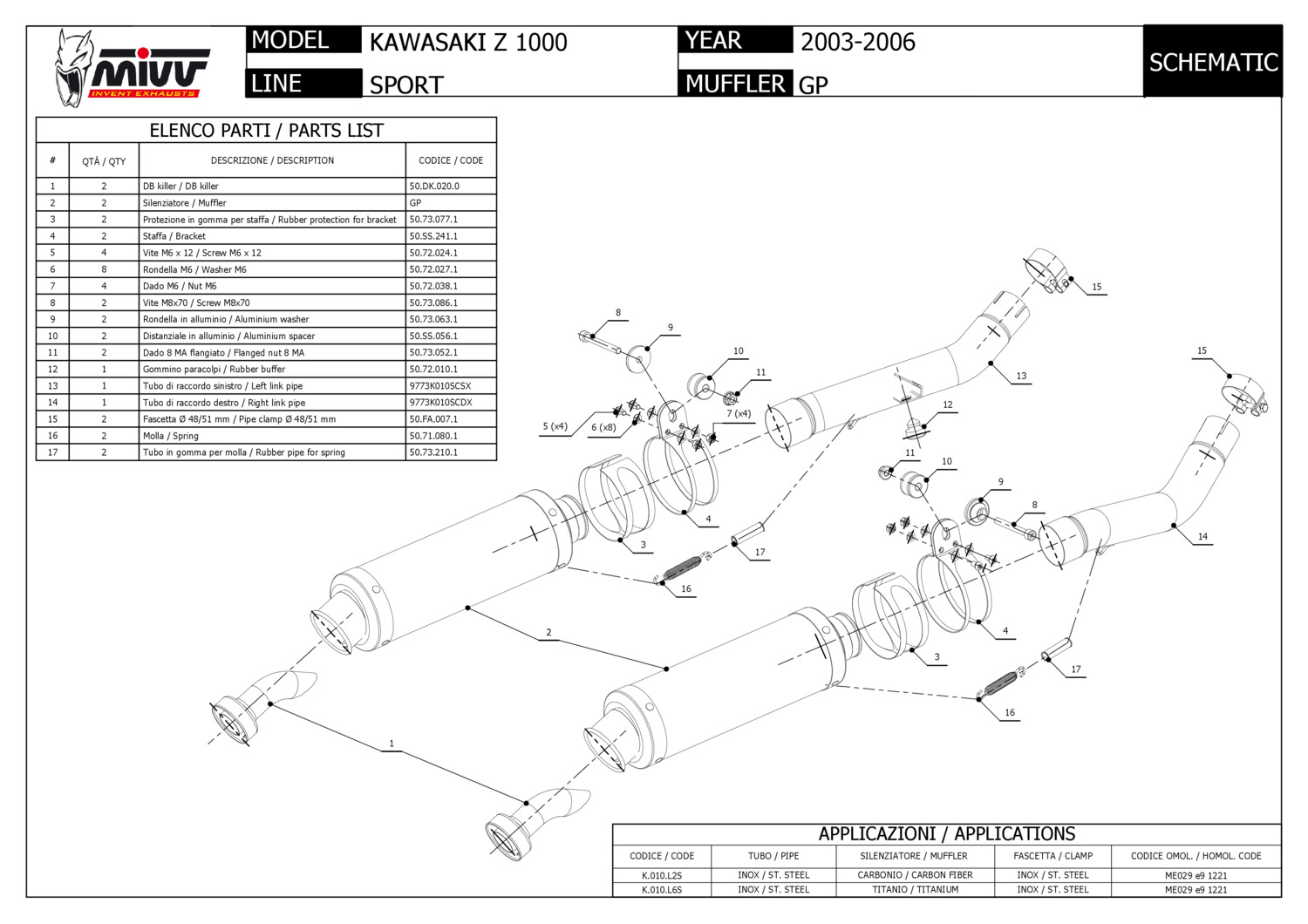 K.010.LXB - Silencers Exhaust Mivv GP Steel Black Kawasaki Z1000 Z 1000 03-06Special Price €475.86 Regular Price €618.00 -23% -