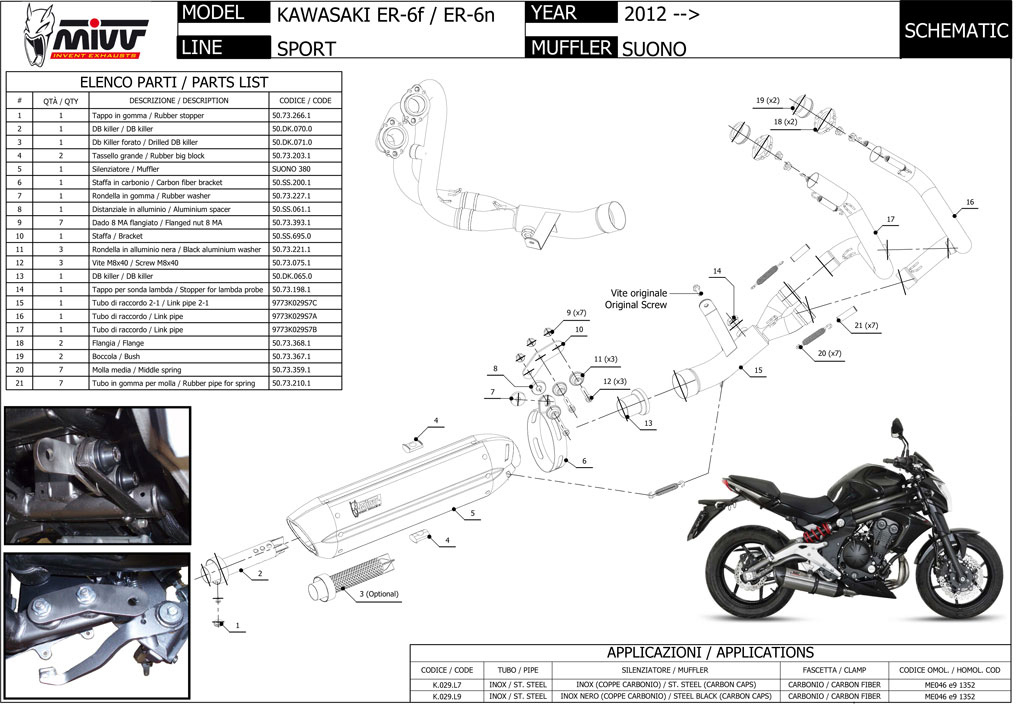 K.029.L7 - Full System Exhaust Mivv SPORT SUONO STEEL C/CAP KAWASAKI ER-6N '12>