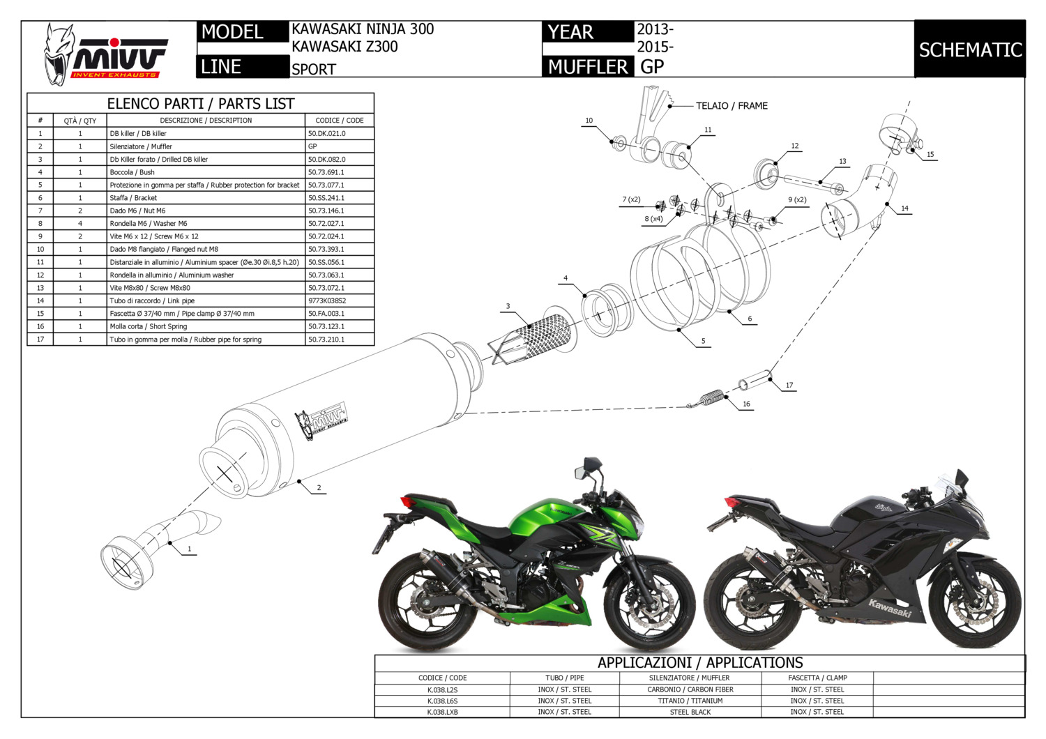 K.038.LXB - Muffler Exhaust Mivv SPORT GP STEEL BLACK KAWASAKI NINJA 300 13-Special Price $305.93 Regular Price $397.31 -23% -