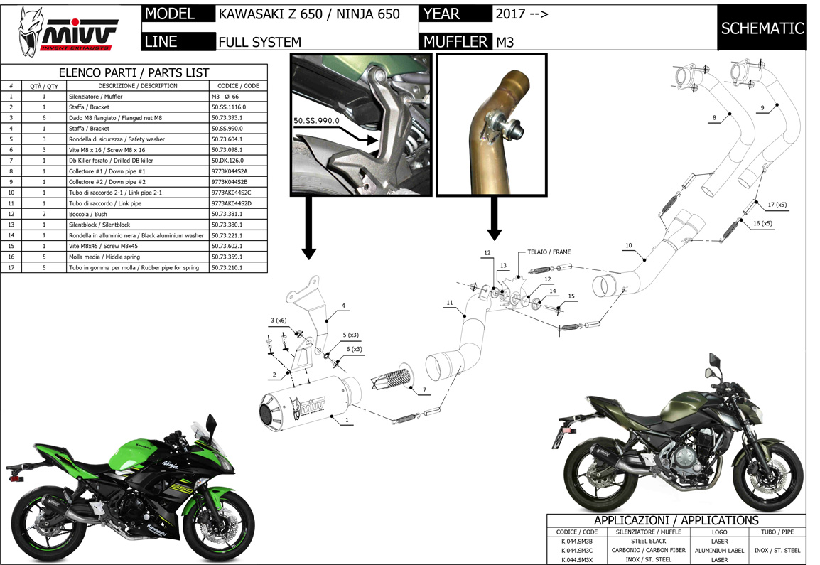 K.044.SM3X - Full Exhaust Mivv MK3 SS KAWASAKI NINJA 650 / Z650 (17-)Special Price $360.79 Regular Price $468.56 -23% -