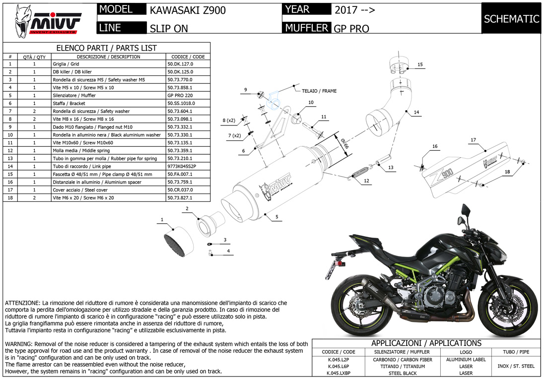 GP PRO, manufactured by semi-handmade TIG welding, shows a compact and essential design and an aggressive sound. Inspired by the world of competition, the exhaust pipe is equipped with a removable protective grille that hides the dB-killer. This muffler sports the characteristic Mivv logo created by laser technology.