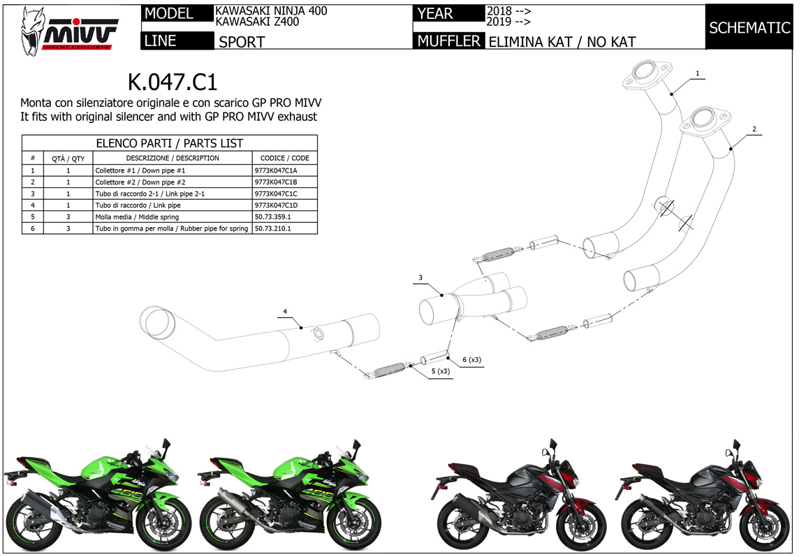 NOTICE: Tubo nokat (monta sia coi silenziatori MIVV che con gli originali) / No-kat pipe (compatible with both MIVV and original silencers)