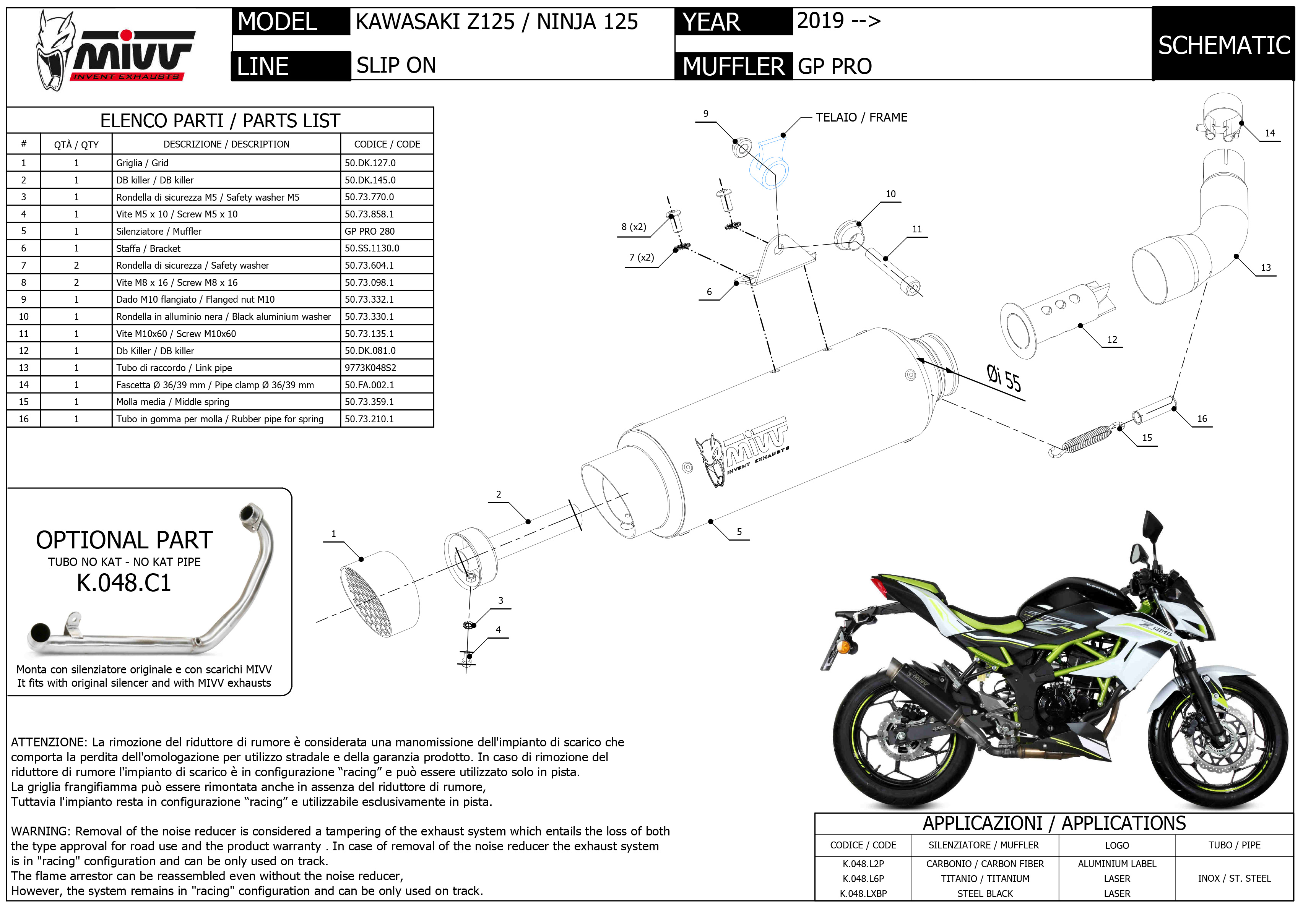 K.048.LXBP - Exhaust Muffler MIVV GPpro Black KAWASAKI NINJA / Z 125