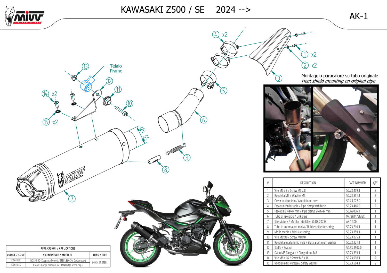 K.061.L4K - Exhaust muffler Mivv AK-1 Titanium KAWASAKI Z500 / SE (24-25)Special Price €415.80 Regular Price €540.00 -23% -