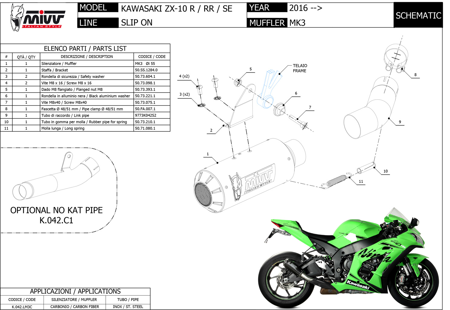 K.042.LDRC - Exhaust Muffler MIVV DELTA RACE Carbon KAWASAKI ZX-10 R / RR / SESpecial Price $574.01 Regular Price $745.47 -23% -