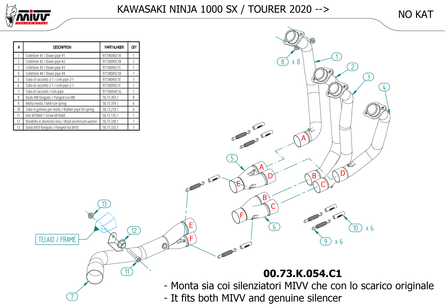 K.054.C1 - Exhaust Manifold MIVV No-Kat KAWASAKI NINJA 1000 SX / TOURER (20-22)