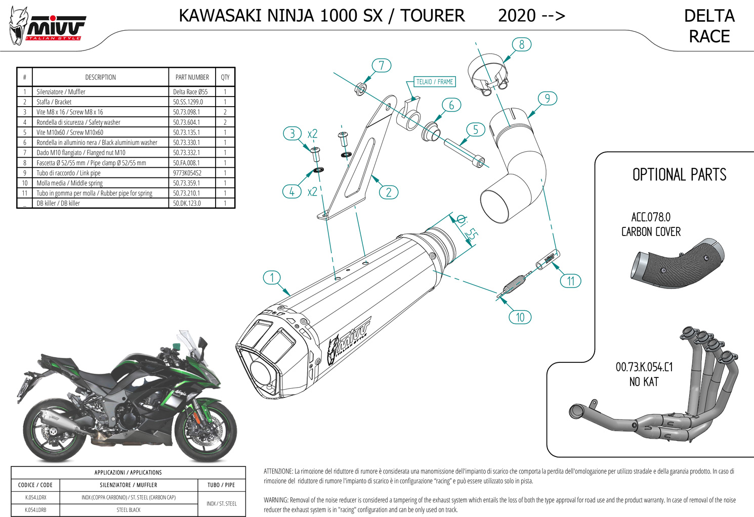 K.054.LDRB - Exhaust Muffler MIVV DELTA RACE Black KAWASAKI NINJA 1000 SXSpecial Price $531.82 Regular Price $690.67 -23% -