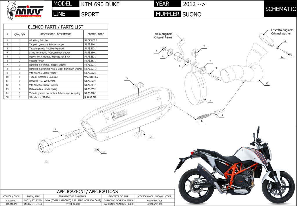 KT.010.L9 - Silencer Exhaust Mivv SLIP-ON SUONO STEEL BLACK KTM 690 DUKE 2012>