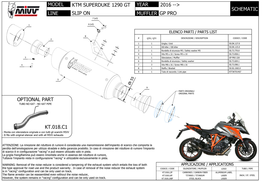 KT.018.L6P - Exhaust Muffler Mivv GPpro Titanium KTM 1290 SUPERDUKE GT (16-)