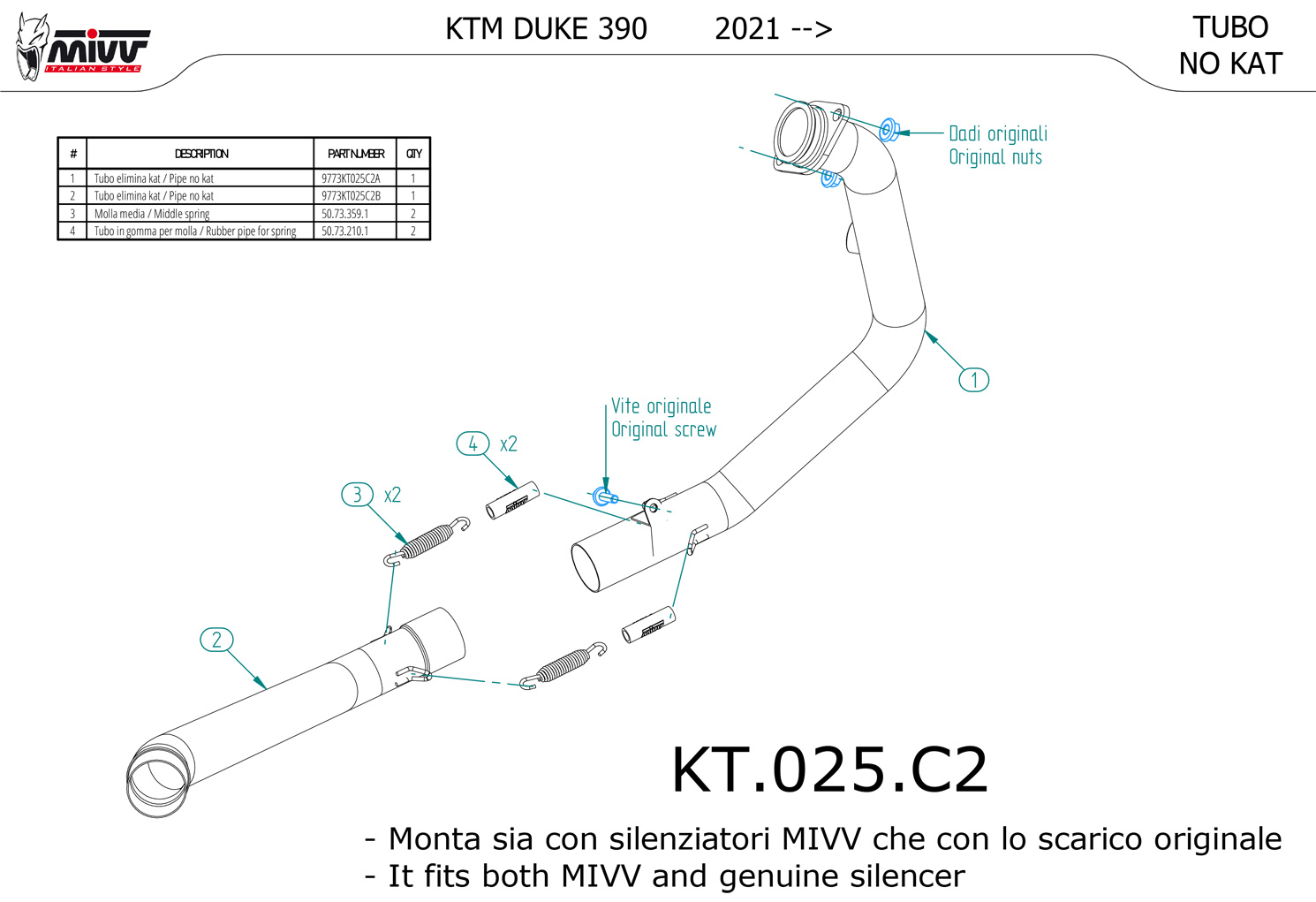 KT.025.C2 - Exhaust Mid Pipe MIVV No-Kat KTM 390 DUKE (21-22)
