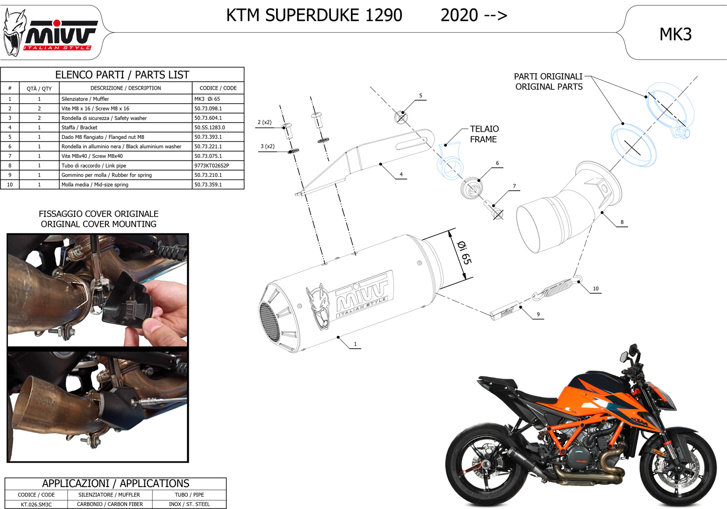 KT.026.SM3C - Exhaust Muffler MIVV MK3 Carbon KTM 1290 SUPERDUKE (20-22)