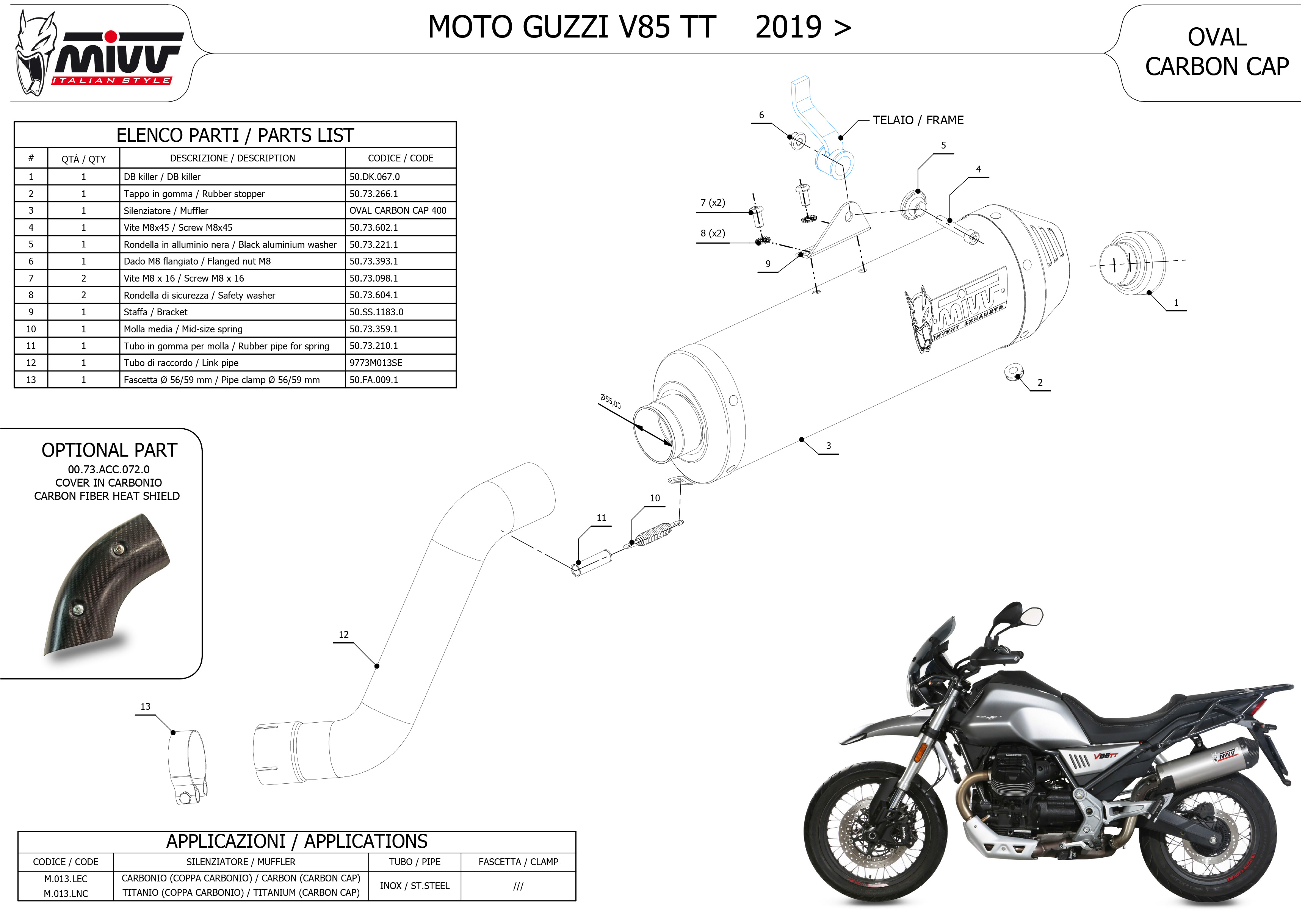 M.013.LEC - Exhaust Muffler MIVV OVAL Carbon MOTO GUZZI V85 TT (19-)