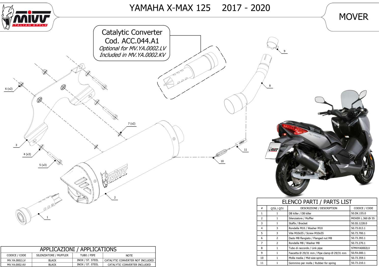 MV.YA.0002.LV - Exhaust Muffler MIVV MOVER Black SS YAMAHA X-MAX 125 (17-20)