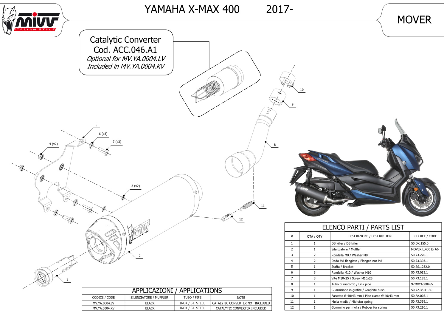 MV.YA.0004.LV - Exhaust Muffler MIVV MOVER Black SS YAMAHA X-MAX 400 (17-20)
