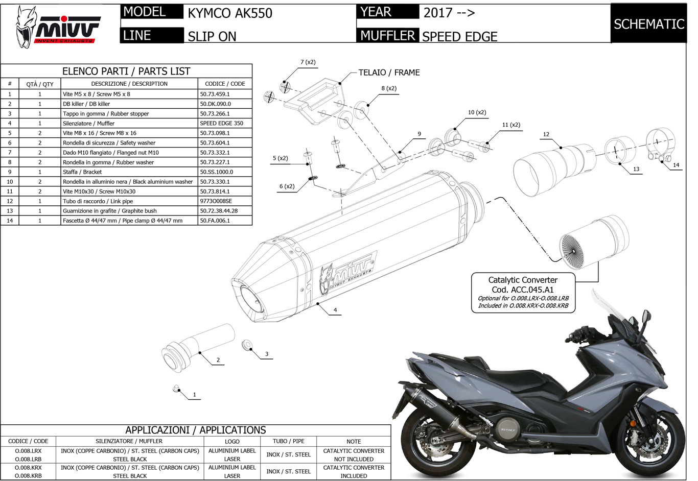 O.008.LRB - Exhaust Muffler Mivv SPORT SPEED EDGE Steel Black KYMCO AK550 (17-)