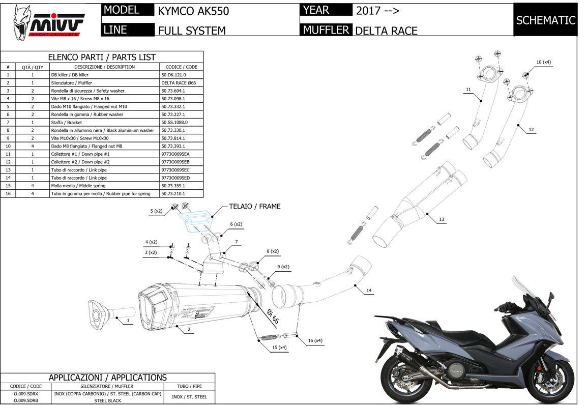 O.009.SDRB - Full Exhaust Mivv DELTA RACE Stainless Steel KYMCO AK550 (17-)
