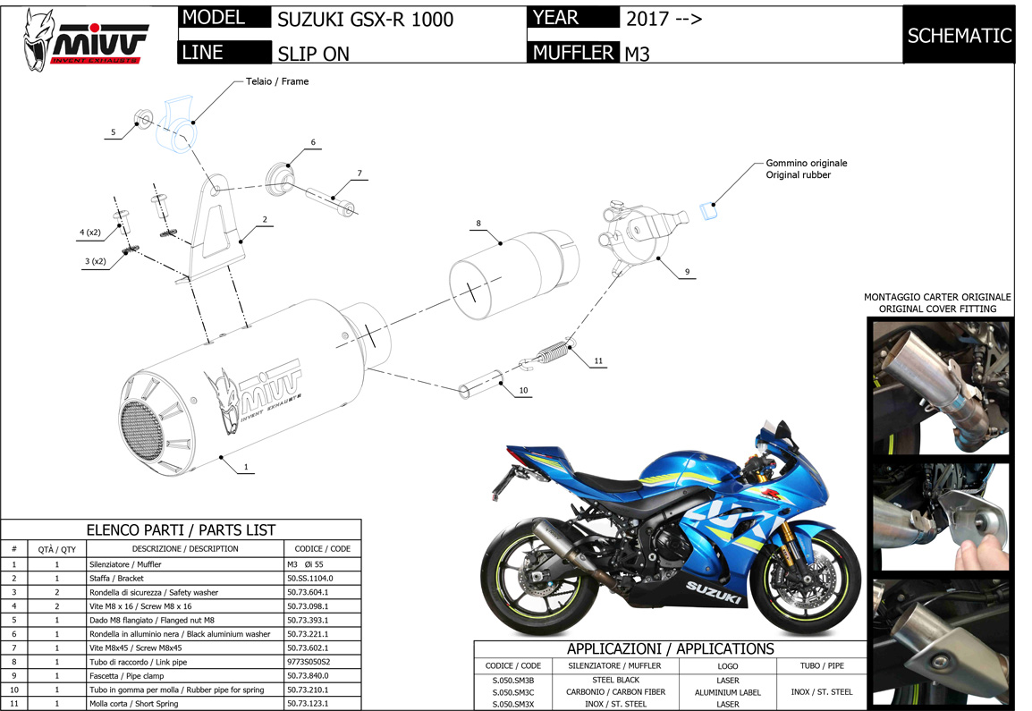 S.050.SM3X - Exhaust Muffler Mivv MK3 Stainless Steel SUZUKI GSX-R 1000 (17-)