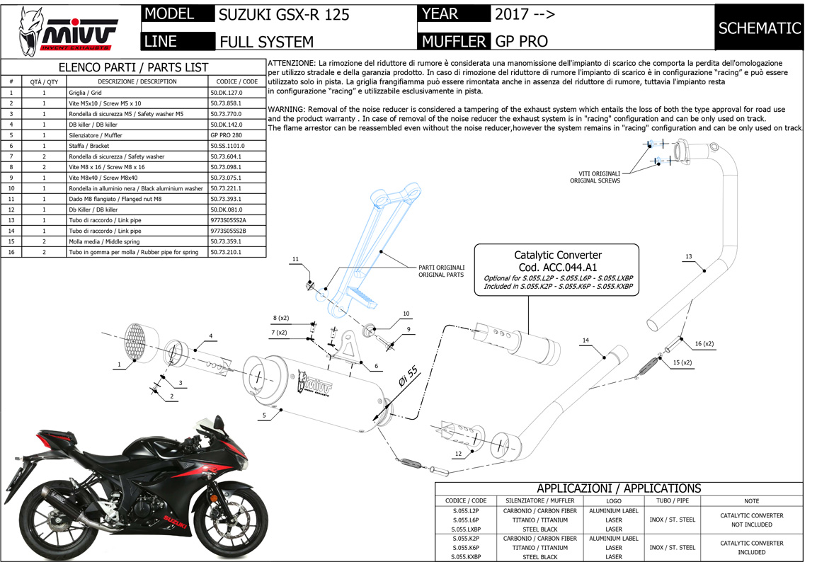 NOTICE: OMOLOGATO SOLO CON CATALIZZATORE INSTALLATO / TYPE APPROVED ONLY WHEN CATALYST IS INSTALLED