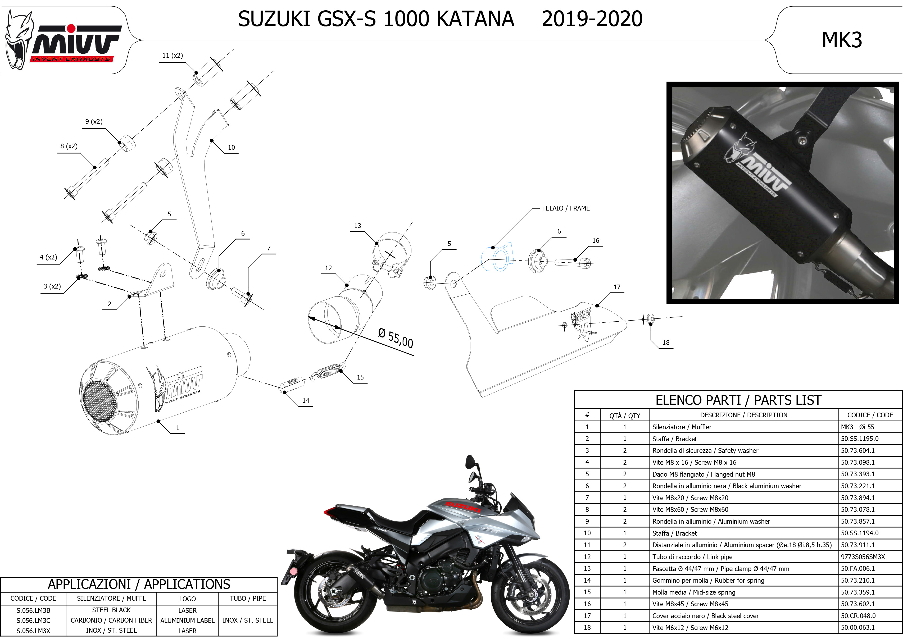 S.056.LM3X - Exhaust Muffler MIVV MK3 SS SUZUKI GSX-S 1000 KATANA (19-20)